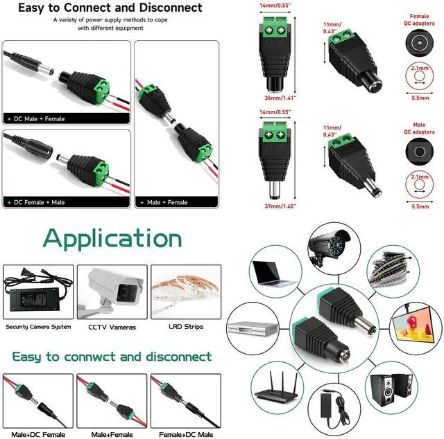 Wide Application: Compatible with CCTV camera, IP camera, LED panel, amplifier, modem, walkie-talkies, camcorders, Bluetooth devices, aviation models, LED strip, electronic piano, optical network unit, router, small Bluetooth amp, electric scooter 12V turn signals, car DVR etc.