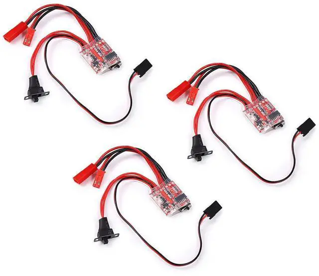Working voltage: 4.8V--8.4V (suitable for 2S lithium battery) Current (A): 20A Drive frequency: 2kHz Input: Li Po 2S/Ni-MH/Ni-Cd 4-7 battery Constant current: 20A, 25A<30s pulse 50A<5s UBEC output: voltage 5.7V, current 1A This ESC can be matched with 130/180/260/280/380 brush motor Adjustment: The ESC is in the middle range, the new controller needs to fine-tune the throttle, so that the ESC light is not on, keep it in the neutral position, the throttle fine-tuning of the controller is TH TRIM