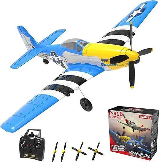 RC Plane, Remote Control Airplane 4 Channel Fighter with 6-Axis Gyro, Ready to Fly Upgrade P51 Mustang RC Airplane for Beginners Adult with Xpilot Stabilization System & One Key Aerobatic Blue