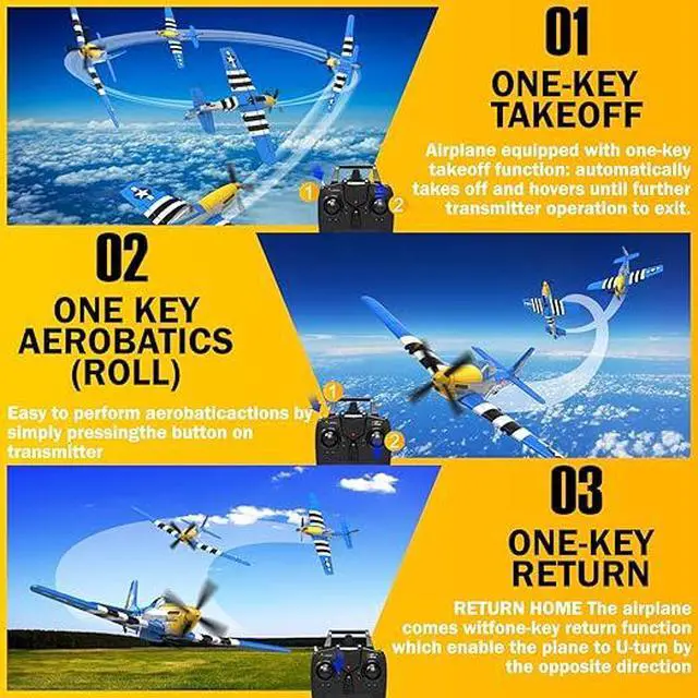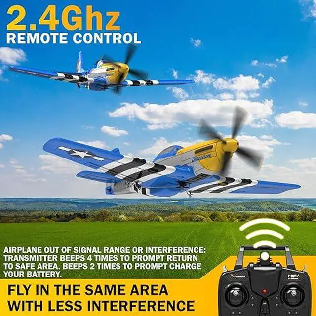 Enhanced Features for Superior Flight: Experience the upgraded P51 RC plane, designed for a better flying adventure. Key improvements include convenient motor/receiver repair ports, a clearer transparent canopy, one-touch take-off, and a signal interference warning. These enhancements elevate your overall control and enjoyment.
