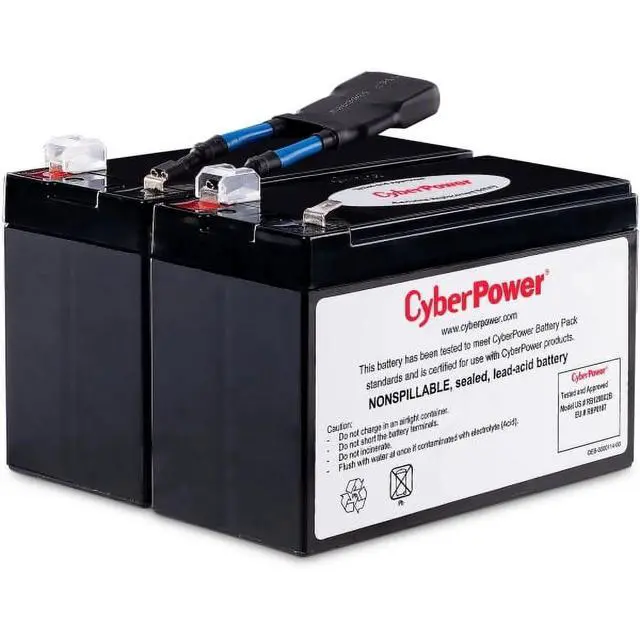 The RB1290X2B UPS Replacement Battery Cartridge restores life to CyberPower UPS systems that have weak or completely depleted internal batteries. The RB1290X2B contains two 12V/9Ah batteries, certified to meet or exceed original manufacturer specifications. This leak-proof, sealed lead-acid battery never requires replacement fluid.