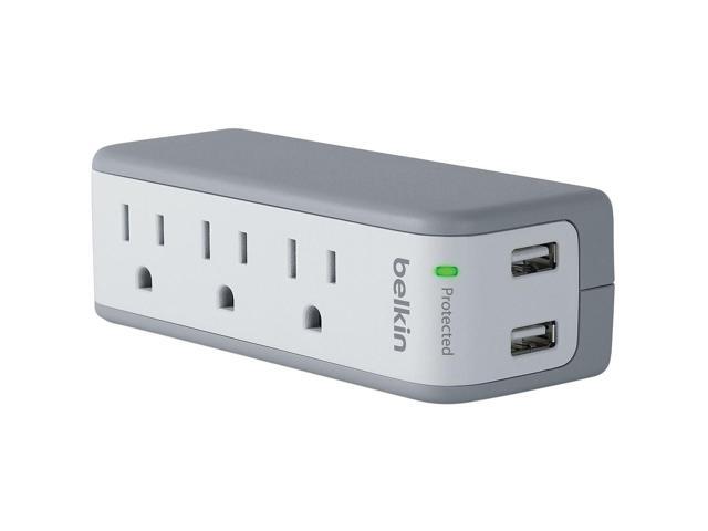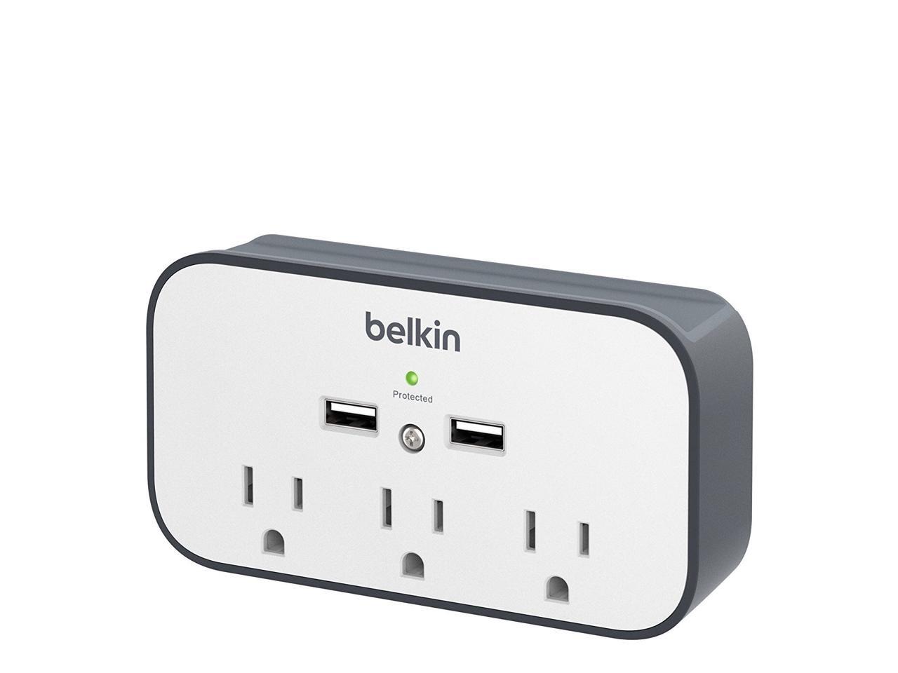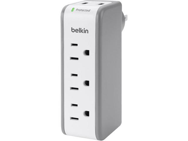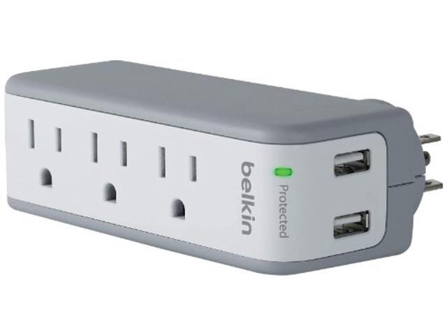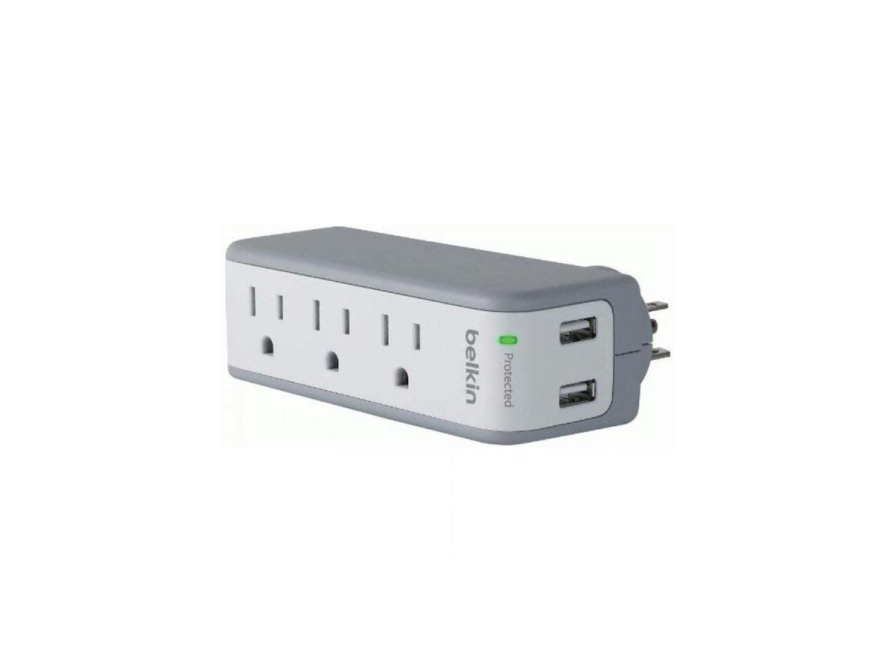 Belkin 3-Outlet SurgePlus Mini Travel Swivel Charger Surge Protector with Dual USB Ports (2.1 AMP / 10 Watt), BST300