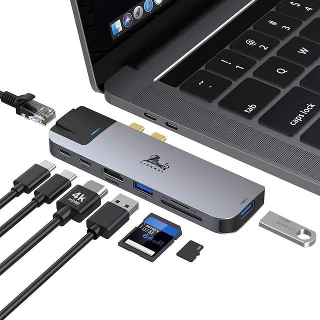 Product DescriptionDual Monitor Docking StationUSB CDocking StationMacbook Por/Air Docking StationSD / TF Slot222USB-A334HDMI Port1*4K@60HZ 1*4K@30HZ1*4K@30HZ1*4K@30HZ1*4K@60HZ 1*4K@30HZPD Port1*87W Charging 1*87W Charging 1*87W Charging Ethernet Port1*1000Mbps1*1000Mbps1*1000MbpsCompatibilityUSB-C LaptopsUSB-C LaptopsDesigned for Macbook pro & Macbook Air 8-IN-1 Adapters for Macbook pro 2020-2016 and MacBook Air 2020-2018 Please read before purchasing: This adapter is not suitable for wearing a protective case. Due to power output limitations of some laptops, it is recommended that you connect only one HDD/SSD at a time. Compatible displays and cables required to achieve the maximum video resolution. It is not recommended to use two USB 3.0 Type-A ports for charging.