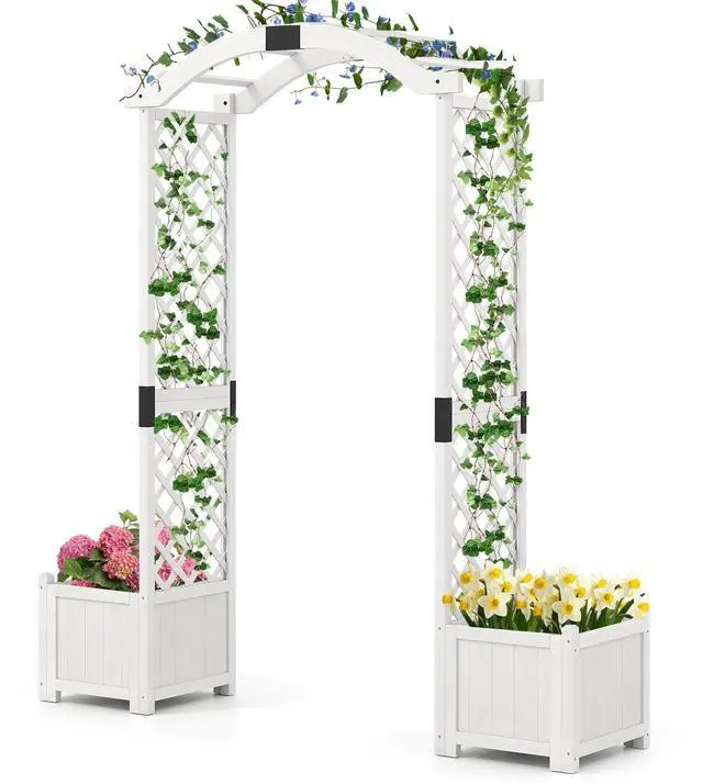 Durable Wooden Construction: Crafted with 100% natural fir wood, the garden arbor with trellis is crack-resistant and durable. And the surface is painted to ensure long lifespan in outdoors. Moreover, the 2 large planter box with elevated legs will add its stability.
