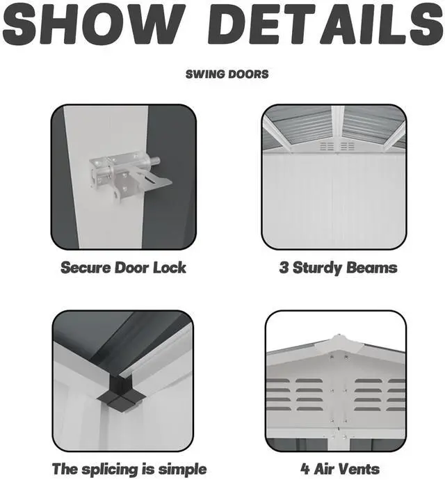 10x8 feet garden shed outdoor storage building large eetal tool sheds