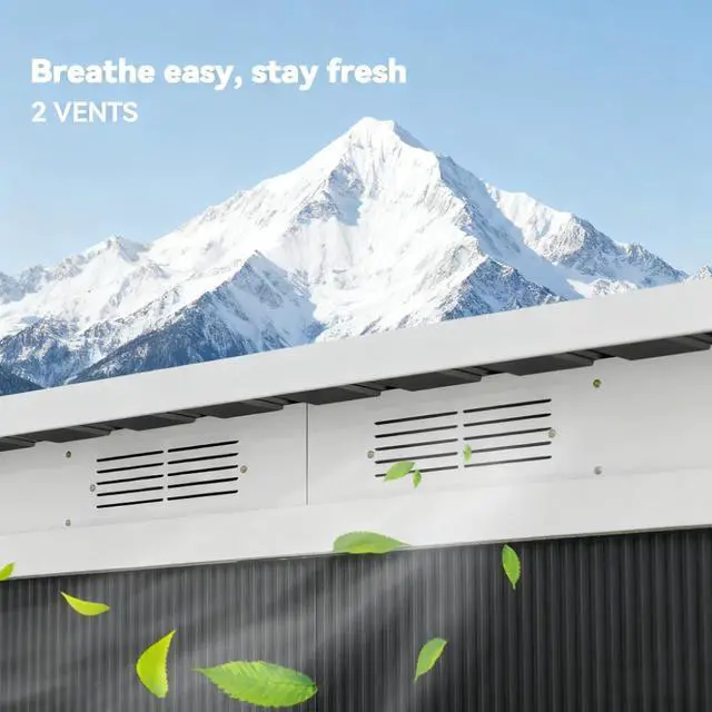Good Ventilation and Lockable Door: Our metal outdoor storage sheds feature two ventilation slots on the front and back, increasing airflow. This prevents odor and keeps your equipment and tools dry. Its lockable door protects items from would-be thieves.