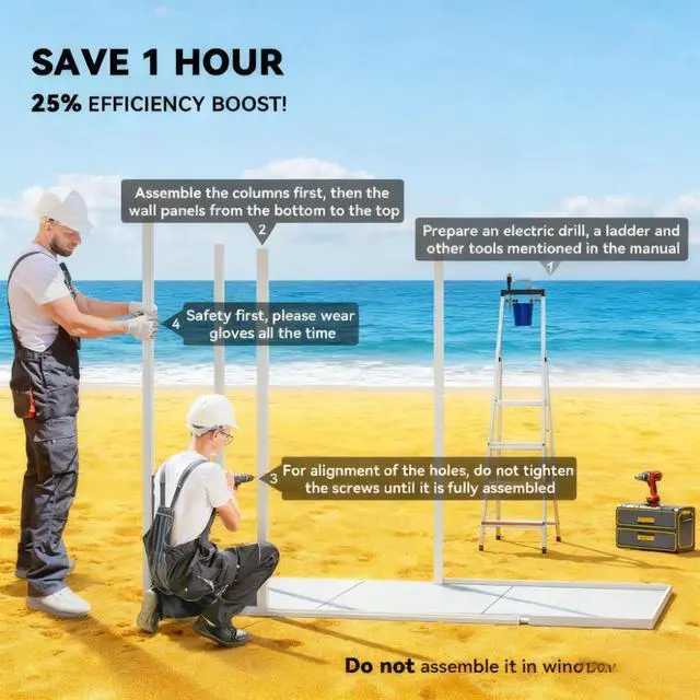 : The building block-like installation method greatly reduces the installation difficulty as well as time. Assembly requires 2-3 people and takes about 3 hours. Avoid installation in strong winds and always wear provided gloves
