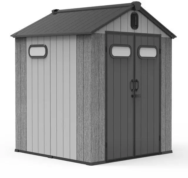 SPACIOUS STORAGE -This 6'x6' plastic outdoor storage sheds meets most outdoor storage needs, making it a perfect addition to your patio, garden and deck. The large outdoors shed create a safe and weatherproof space for garden tools, lawn mower, pets, plants, bicycles, patio furniture. Etc