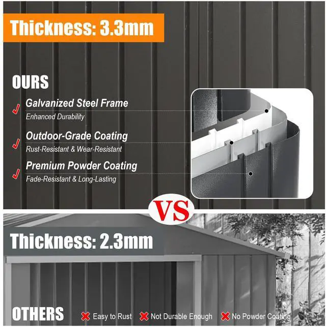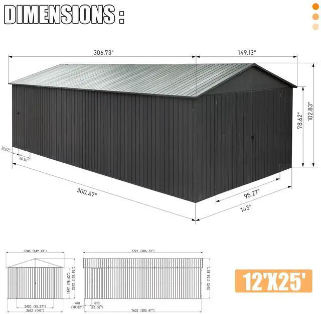 Extra Huge Storage Shed: Available in 25 FT and 20 FT options, provides a large, secure, and weatherproof space for your tools, outdoor furniture, bicycles, and more, meeting different storage needs for various yards.
