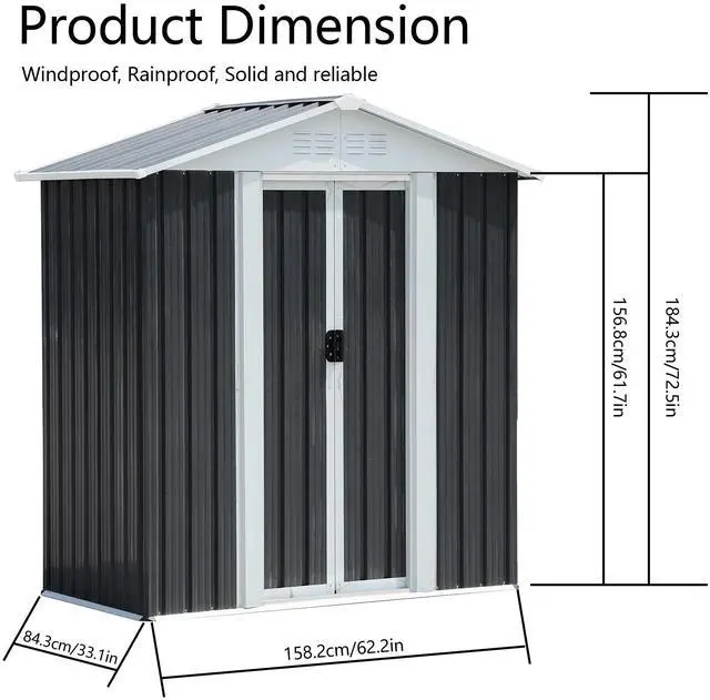 Designed with ventilation to keep your stored items dry and reduce odors, its overlapping wall panels are waterproof, moisture-proof, and UV-resistant, capable of withstanding harsh weather conditions.
