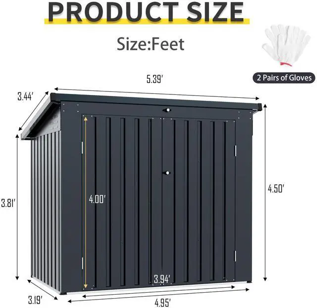 {Durable and Rot-Resistant}This outdoor storage shed is made of galvanized steel as a whole and the special coating layer and process makes the shed not easy to rust and corrosion. Designed for long time outdoor using, make sure the stability of your items.