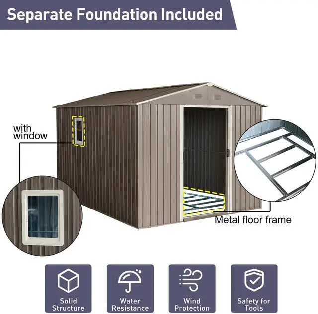 [Gift Tool] Metal Foundation Frame, Anchors, Hooks, Shelf, Lock (padlock), Gloves Easy-build shed made of Electro Galvanized Steel treated for strong corrosion resistance. UV resistant steel panels protect against rot, insects, and extreme weather conditions.