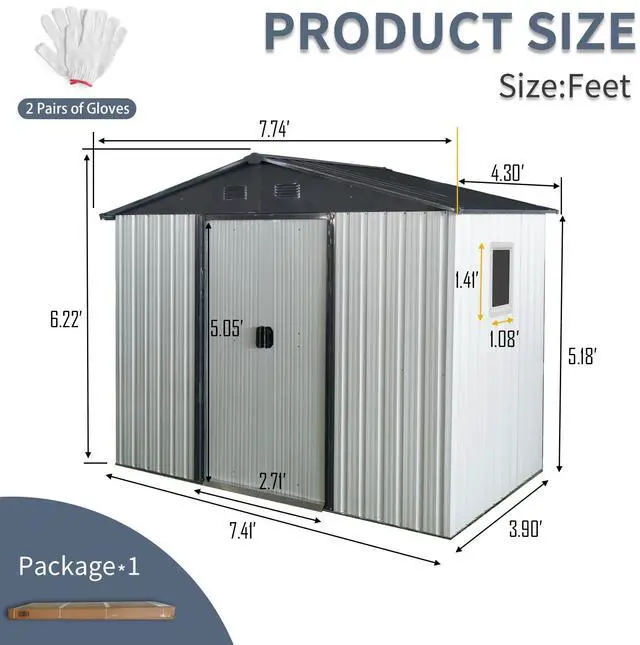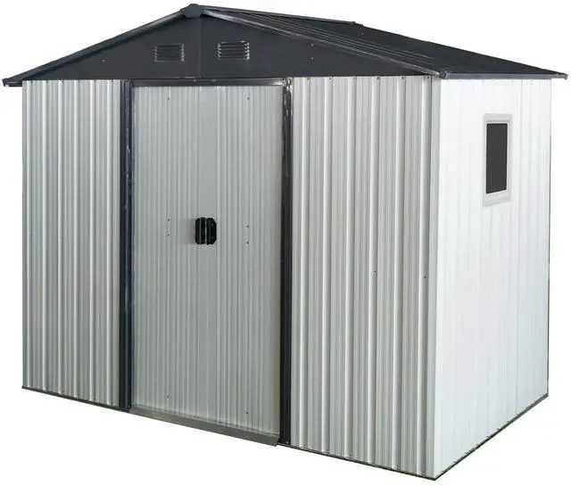 Humanized Detail Design: The metal storage shed with window has air vents to keep the internal air circulation, and you can store wood and iron products to keep them dry. The classic sliding door design saves space and does not have to be constrained by the use of the site assembled easily.