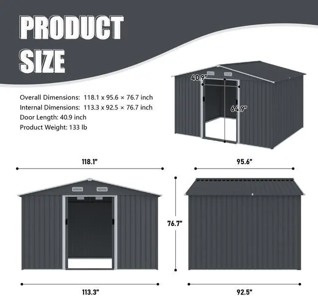 [Durable Construction & Spacious Interior] The outdoor tool shed is made with steel, highly resistant to corrosion, weather resistance and UV protection. The thick wall panels provide adequate suppor