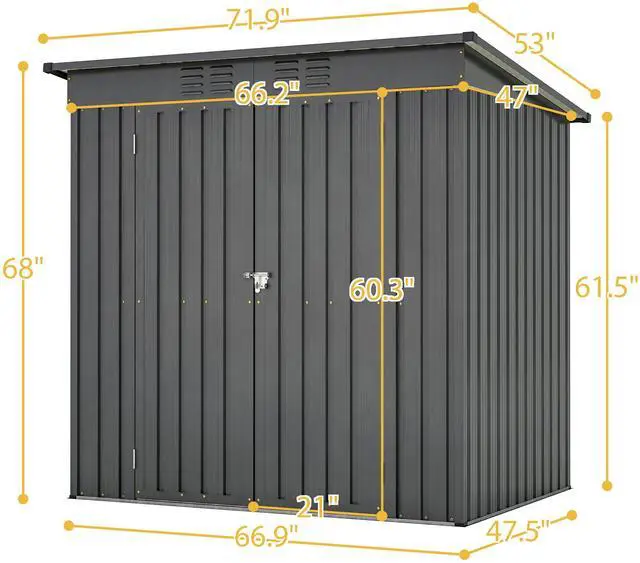 [Heightening door & Overall Height] Outdoor storage shed has upgraded the product height. The height of the door is 60.3" and the overall height is 68", which makes you more comfortable when entering the house without feeling depressed.