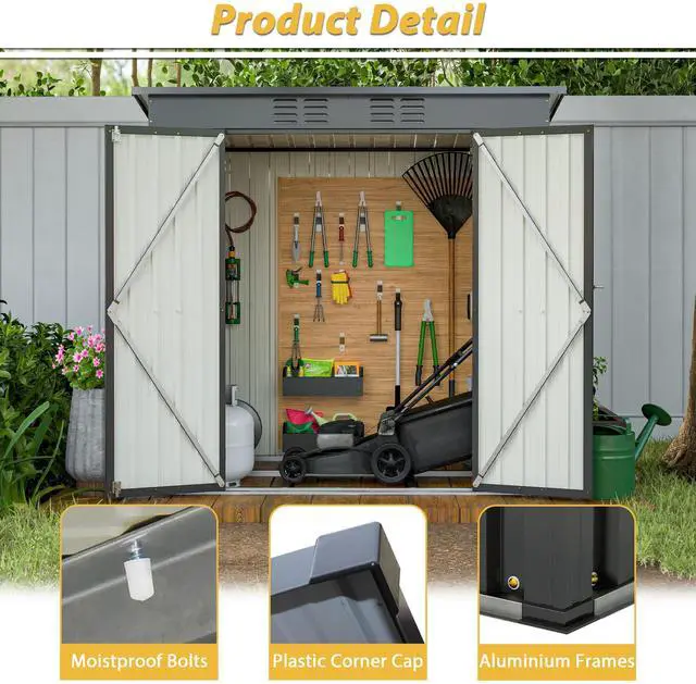 [Punched Vents] Unlike typical sheds with plastic vents, this shed comes with two integrated punched vents which will not deteriorate against sunlight.