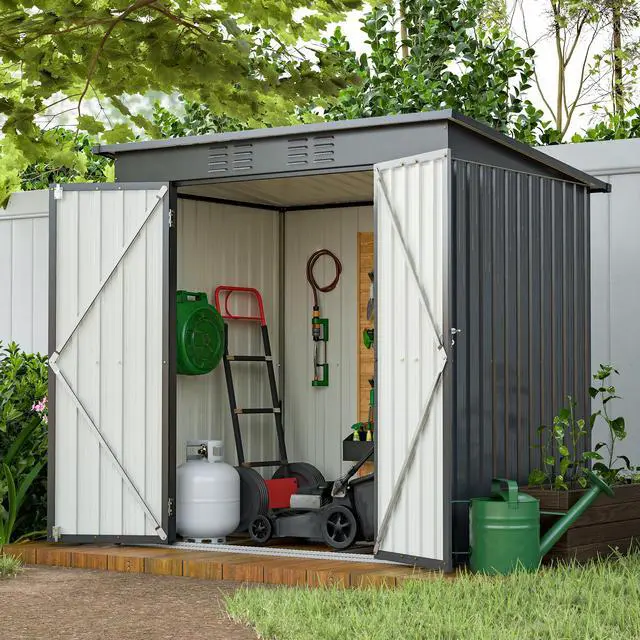 [Multifunctional use] 6'x4' outdoor Metal storage cabinet can be used not only as a tool shed, but also as a pet house, providing a safer and warmer room for your pet; it can also be used as a storage room for storing boxes, and can also be used as a garbage collection room to keep the backyard tidy. Which is a great shed house for backyard!