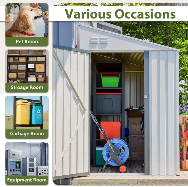 4. Space-Saving & Customizable InteriorDesigned to fit snugly against a wall or fence, this shed maximizes yard space without overcrowding. The sloped roof encourages quick water runoff, minimizing debris buildup and roof damage. For added convenience, you can easily install wall-mounted shelves or use freestanding organizers to tailor the interior to your storage needs.