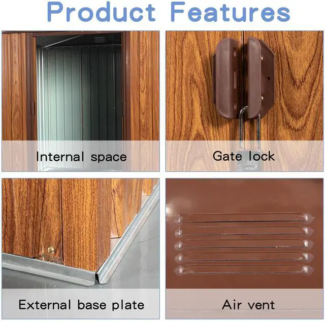 [Punched Vents] Unlike typical sheds with plastic vents, this shed comes with four integrated punched vents which will not deteriorate against sunlight.