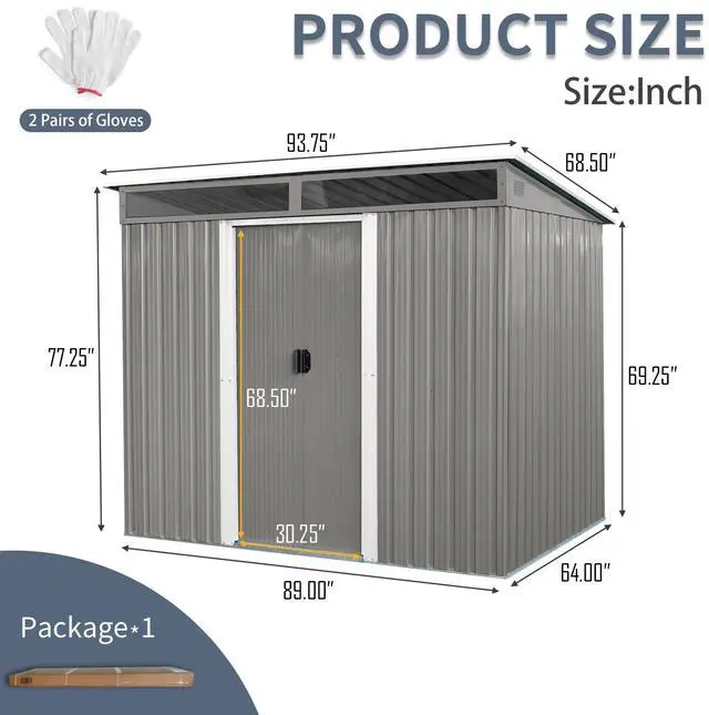 Sturdy Outdoor Storage RoomThe outdoor tool shed is made with galvanized steel for strong CORROSION-RESISTANCE, UV-RESISTANT and MOISTURE-PROOF. It is suitable for all weather conditions and can be used all year round.