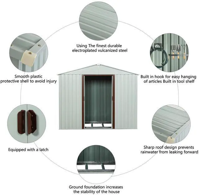 [Robust Construction] Nothing irks a garden hobbyist more than the sight of a collapsed shed. Luckily, this shed utilizes galvanized iron frames which greatly increase the overall sturdiness. On top of that, the galvanized steel panels, coated with eco-friendly painting, can endure harsh weather for at least 6 years.