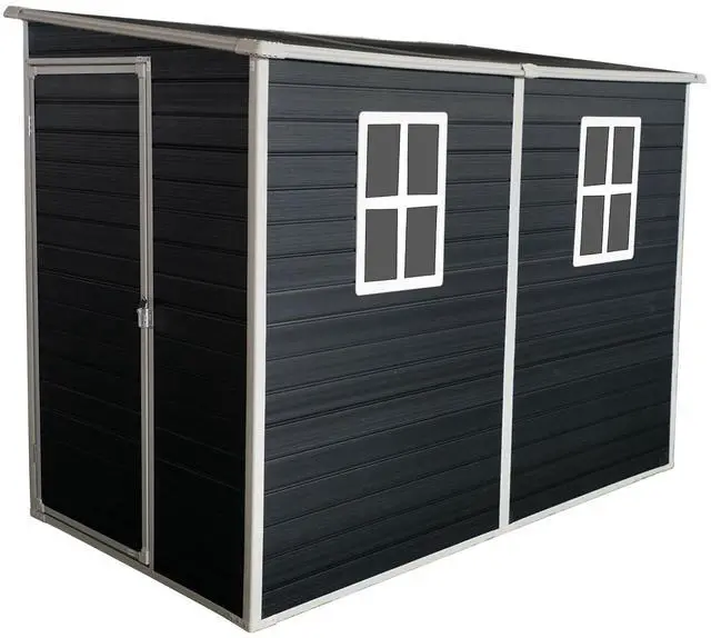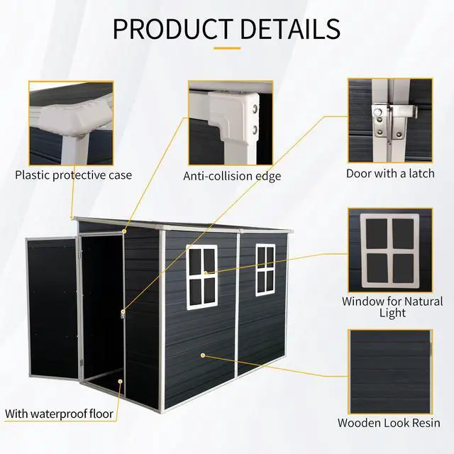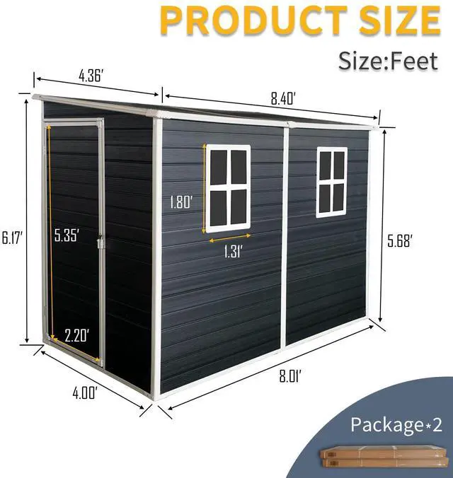 High quality materialsThis shed offers excellent weather resistance, ensuring your belongings stay safe and protected year-round. The UV-resistant exterior finish ensures long-lasting color vibrancy and protection against fading caused by sun exposure.