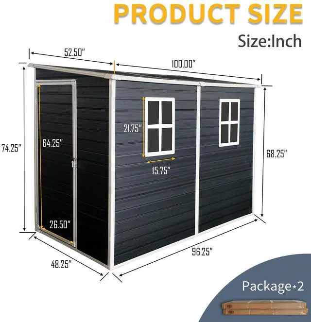 Ventilation & WindowThis shed also features ventilation panels to ensure proper air circulation, preventing musty odors and mildew growth. Two built-in windows allow light to enter, creating a pleasant, well-lit atmosphere