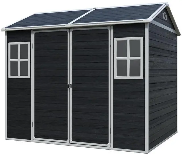 PRACTICAL DESIGN: This outdoor waterproof storage shed features a sloping roof, preventing water accumulation.