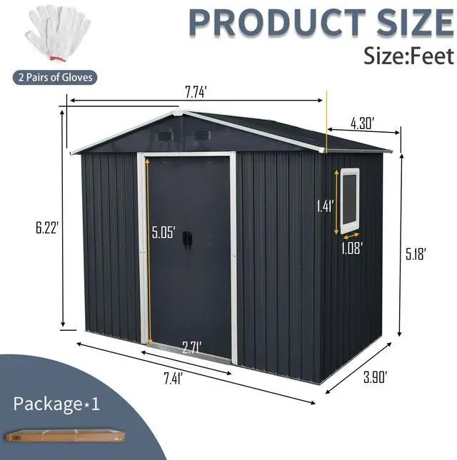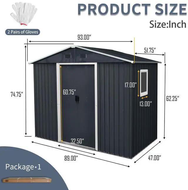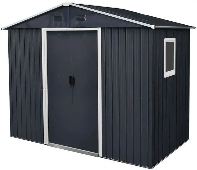 Humanized Detail Design: The metal storage shed with window has air vents to keep the internal air circulation, and you can store wood and iron products to keep them dry. The classic sliding door design saves space and does not have to be constrained by the use of the site assembled easily.