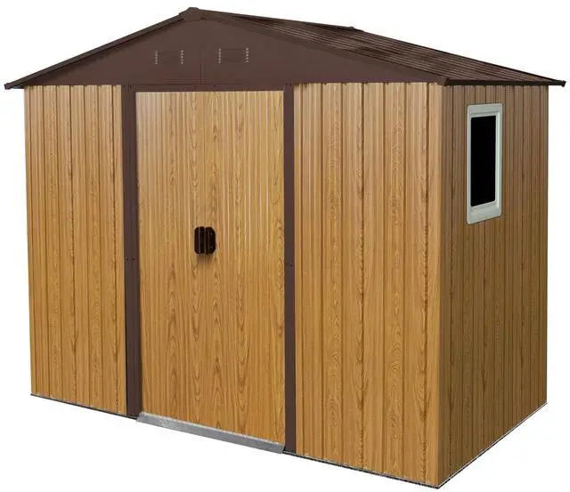 Humanized Detail Design: The metal storage shed with window has air vents to keep the internal air circulation, and you can store wood and iron products to keep them dry. The classic sliding door design saves space and does not have to be constrained by the use of the site assembled easily.
