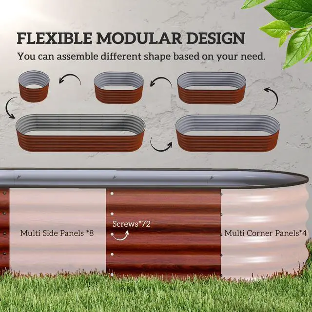 with an open bottom, our garden box can help plants reach their potential. Start flowers with special soil, and as the roots grow, they'll have nearly unlimited room. Modular Garden Bed: Each raised garden bed kit includes multiple metal side and corner panels. As you get more, you can assemble the planter panels into more shapes and sizes. Galvanized Raised Garden Bed Info: Overall Dimensions: 94.5" L x 23.5" W x 16.5" H, Planting Area: 93" L x 22.5" W x 16.5" H. Easy-to-assemble design.