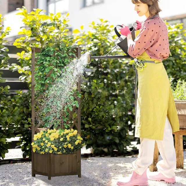 Outdoor Ready Wood: Our double lattice raised planter box is formed out of fir wood and protected with a waterproof paint that lets the beauty of its wood grain pattern shine through. Lattice Planter Box with