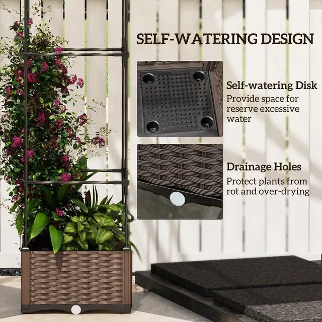 Selected Materials: Made of reinforced PP material, this planter box is suitable for all-weather use. The trellis frame is designed with steel for durability and minimal maintenance. Widely used outdoors to decorate with your favorite plants.