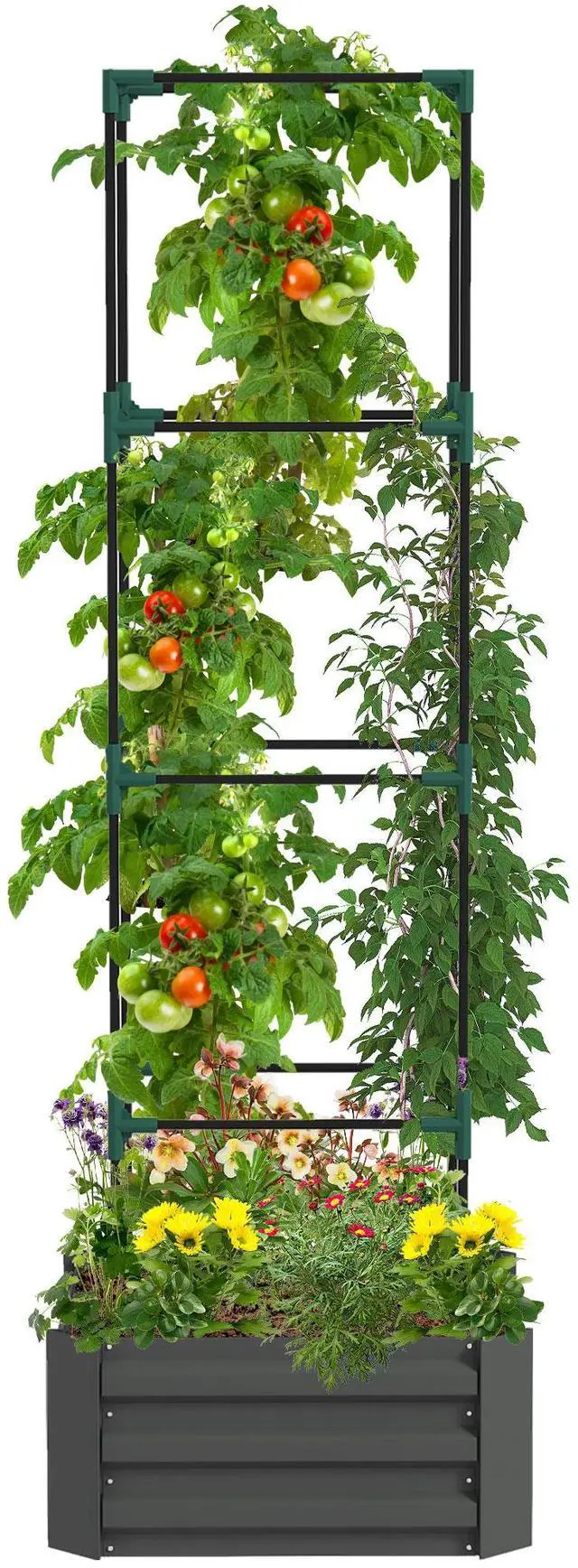 Custom Trellis Tomato Cage: Our included tomato trellis cage provides climbing support to prevent large vines from snapping off, increasing yields. It also can be adapted to different heights to suit your personal plant needs.