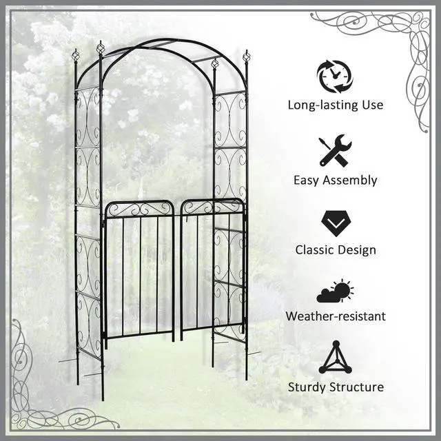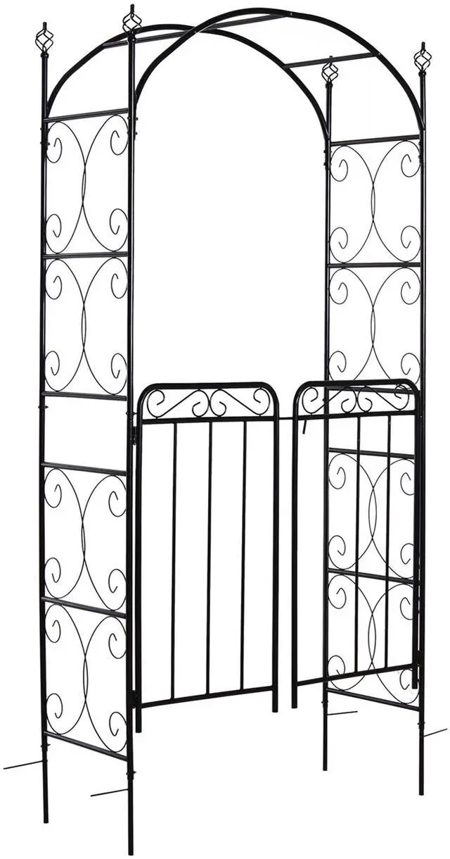 Garden Use: Indoor or outdoor, our two trellis gated garden arch makes excellent décor. It's made of epoxy-coated steel allowing the strength of metal with a sleek weather-safe surface. Grape Trellis & Garden Arbor Gate: Overall