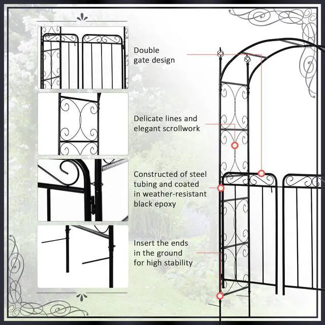 Lockable Garden Gate: With a latchable double-door gate, our arbor arch can lock off sections of your yard or integrate into your wedding ceremony to make an entrance.