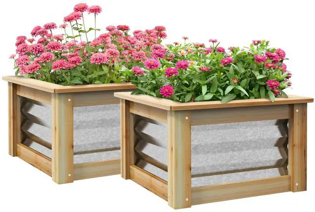 our set of 2 raised garden boxes let you set down soil even if you don't have a yard. With two, you have the option to separate, organize, and optimize soil types. Reinforced Garden Planters: Metal and wood framing come together to create reinforced raised planters capable of enduring harsh weather conditions. The galvanized steel is water-safe, and the wood helps it achieve greater wind endurance. Self-Draining Beds: With open bottoms, our outdoor planter can help plants reach their potential. Start flowers with special soil