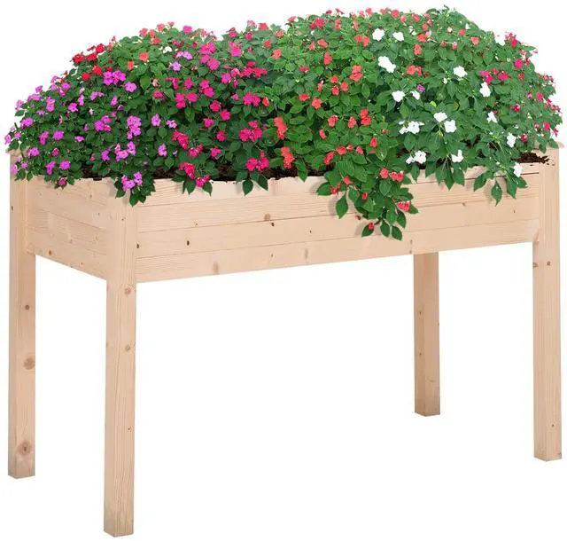 Legs: Allow your flowers and vegetables breathing room, and roots room to grow. Our raised garden bed with legs has a big trough-shaped planter box capable of holding two cubic feet of soil.