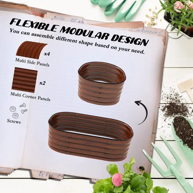with an open bottom, our garden box can help plants reach their potential. Start flowers with special soil, and as the roots grow, they'll have nearly unlimited room. Modular Garden Bed: Each raised garden bed kit includes multiple metal side and corner panels. As you get more, you can assemble the planter panels into more shapes and sizes. Galvanized Raised Garden Bed Info: Overall Dimensions: 41.25" L x 24.5" W x 11.75" H. Planting Area: 41" L x 23.5" W x 11.75" H. Easy-to-assemble design.