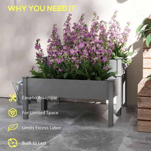 Elevated Design: When you use our raised garden bed with legs, you'll deal with less bending to tend to your plants. Plus, flowers will be raised up and away from weeds and animals, making it comfy for you and your plants.