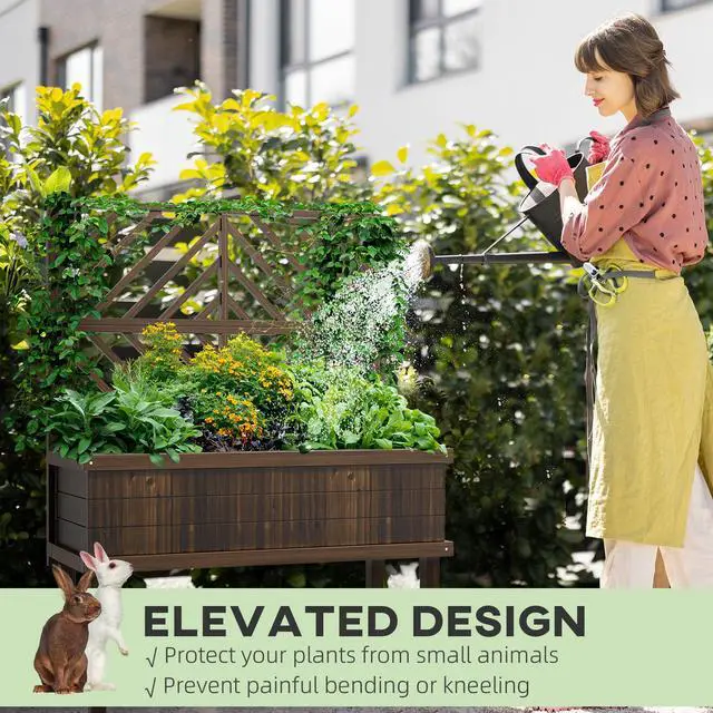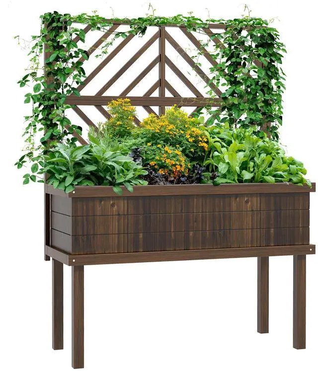 Outdoor Ready Wood: Our stylized trellis planter is formed out of dark, carbonized fir wood and protected with a waterproof paint that lets the beauty of its wood grain pattern shine through. Raised Garden Bed with