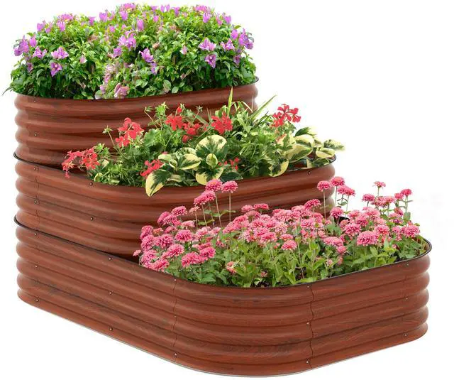 Three-Tier Design: The stacking stair-step design of our raised bed set caters to plants with different root lengths by offering three depths. They can also be arranged separately to create three distinct planting areas of various sizes.