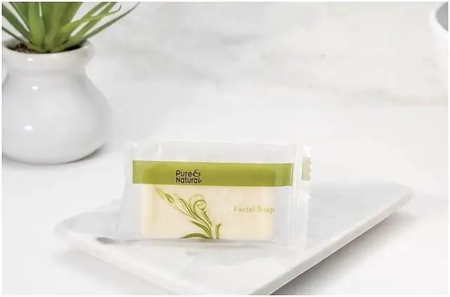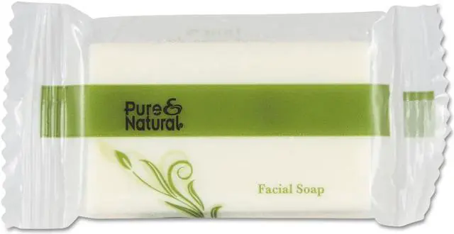 Gentle cleansing soap is made from naturally derived ingredients. Hypoallergenic formula does not contain any harsh chemicals, heavy perfumes or other additives that can irritate the skin. Mild, fresh scent. Soap Type: Bar, Travel/Amenity; Application: Facial; Body; Capacity (Weight): 0.75 oz; Scent: Fresh.