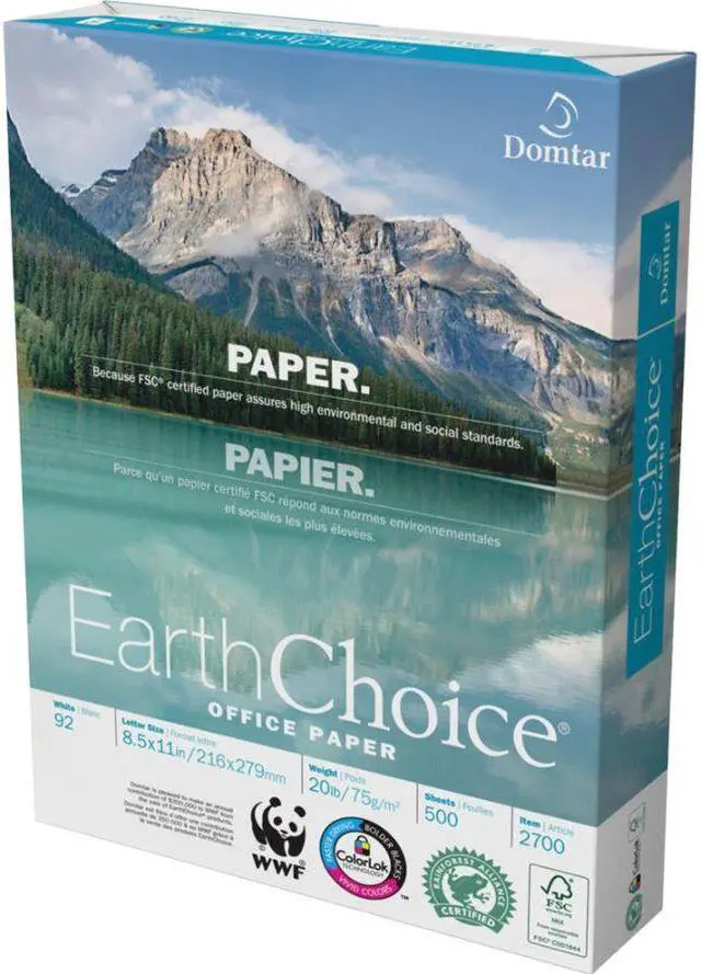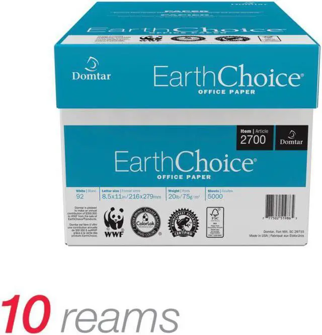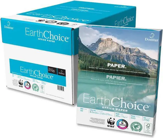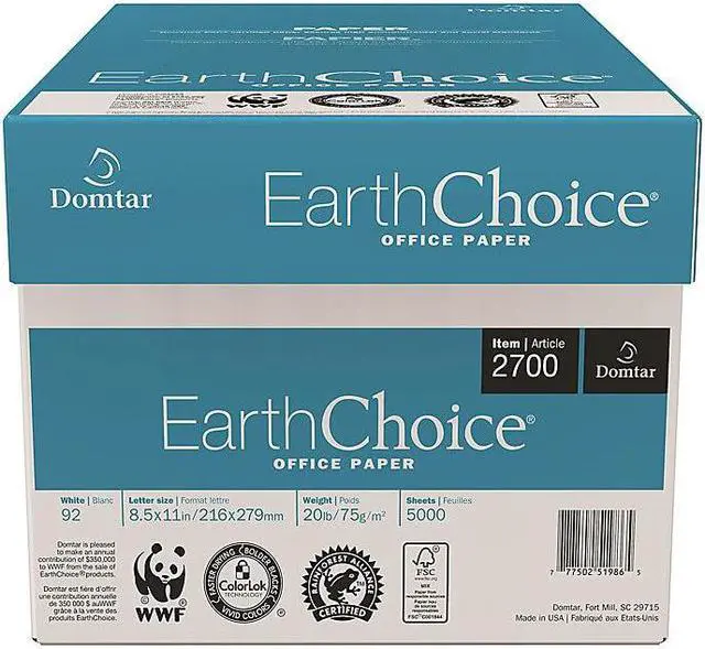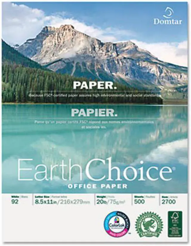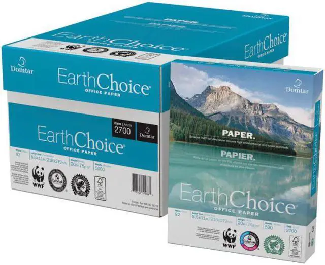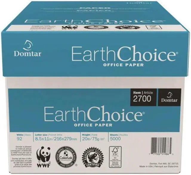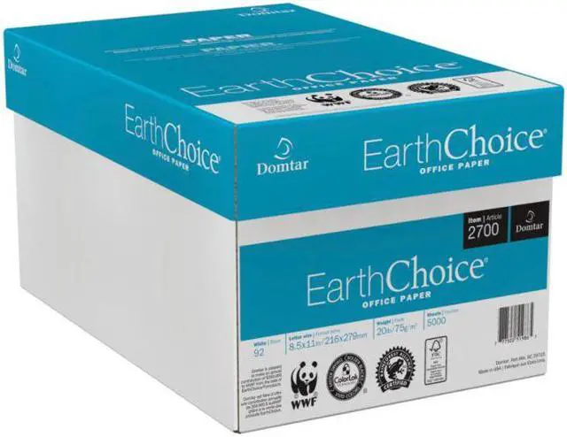 Domtar Paper EarthChoice Office Paper, 92 Brightness, 20lb, 8-1/2 x 11, White, 5000/Carton