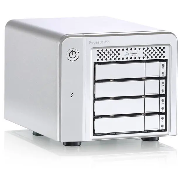 The Pegasus M4 combines the robust Promise RAID engine - renowned for stability and high performance, with the high throughput of Thunderbolt. Pegasus M4 is housed in a compact four-bay enclosure utilizing pre-installed enterprise-level high endurance SSD. The M4 is a perfect fit for on-the-go creative media professionals.