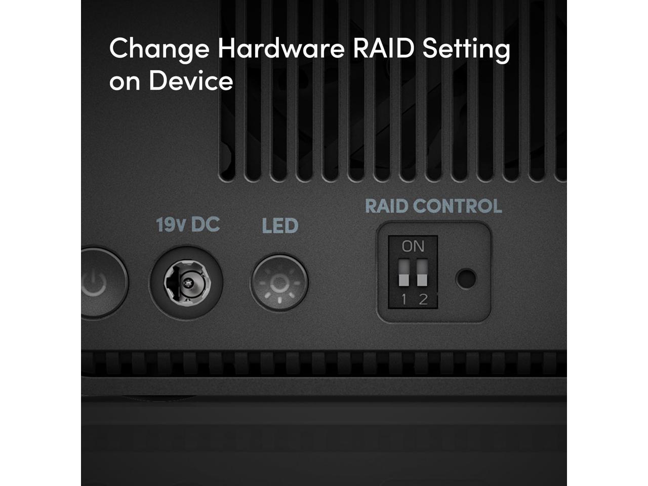 Simple hardware RAID mode switch for easy transition between RAID 0, 1, and JBOD