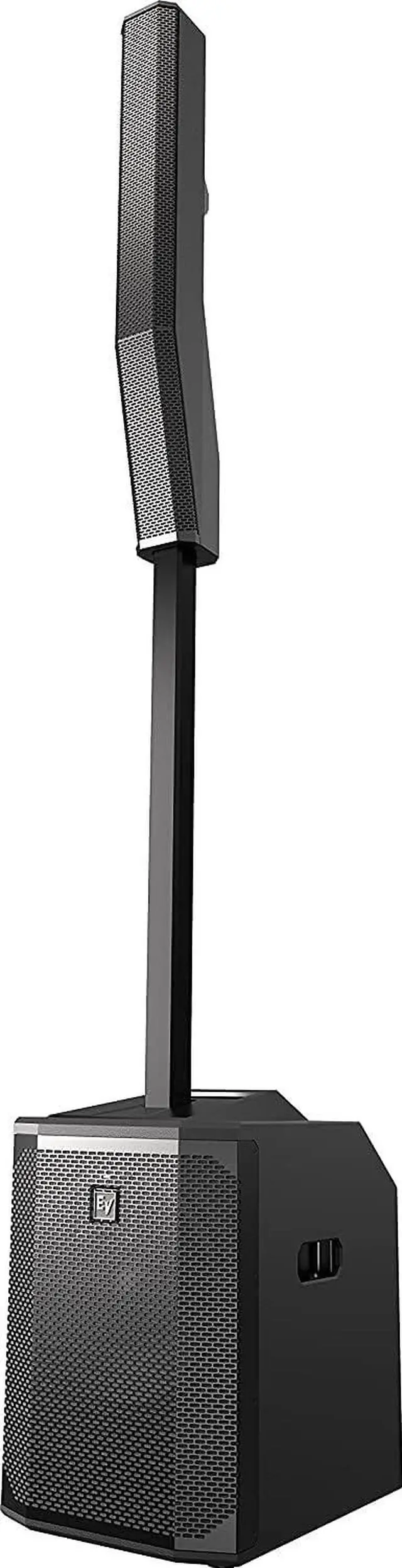 The signal is internally routed to the components. Eight 3. 5" neodymium drivers in the column array coupled with the 12" subwoofer delivers up to 127 dB SPL. The eight composite waveguides control high frequencies with 120 Degree of horizontal coverage, and 40 Degree of asymmetrical (down-facing) vertical coverage to ensure suitable output for sitting and standing audiences. The sub pole and column array come prepackaged in a carrying bag. The processing engine allows for easy setup via four presets (Music, Live, Speech, and Club), three-band EQ, five user-programmable presets (Store and Recall settings), output delay, phantom power (+15V), visual monitoring of limiter status, input level control and meters, and master volume control to ensure optimal gain structure.
