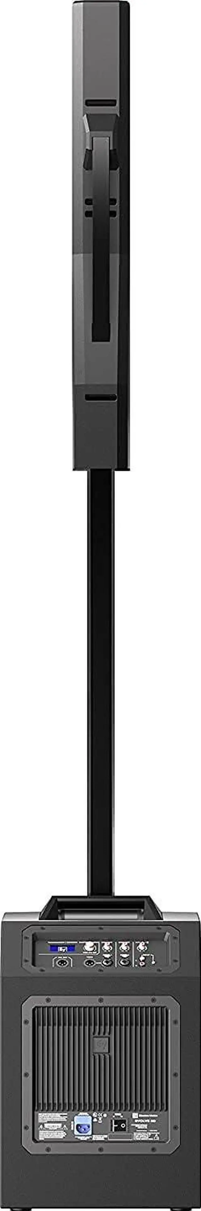The Electro-Voice EVOLVE 50 Portable Column System bundles the EVOLVE50-SB-US and the EVOLVE50-TB, which together consist of the EVOLVE50 column subwoofer in black, column array, sub pole, and carrying bag. The EVOLVE 50 Portable Column System is a three-component loudspeaker system powered by a 1000 W Class-D amplifier and driven by Electro-Voice's Quick Smart DSP. The system consists of a 15 mm wooden, ported, powered subwoofer enclosure that houses a 12” subwoofer capable of a functional frequency output down to 37 Hz. The bi-directional aluminum pole’ s connection to the subwoofer is secured using a magnet, and the column array is gravity-held to the sub pole.