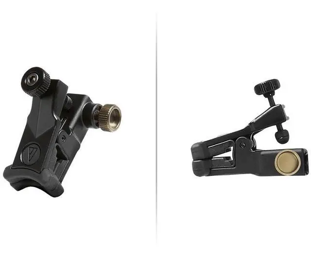 The rugged, metal clip-on mount features rubber-lined clamping jaws with a locking screw that allow the mount to be safely and securely attached to an instrument or other surface. The strong, flexible gooseneck, which is held securely in the mount's socket by a locking screw, lets you position the mic where you want it and holds it there, no matter how much you move your instrument as you play.