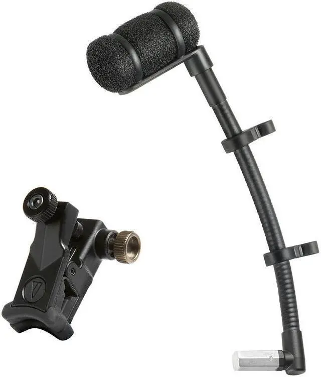 The AT8492U Universal Clip-on Mounting System (5" Gooseneck) is designed to work with the ATM350a Cardioid Condenser Instrument Microphone. The system includes an AT8491U Universal Clip-on Mount and AT8490 5" Gooseneck.